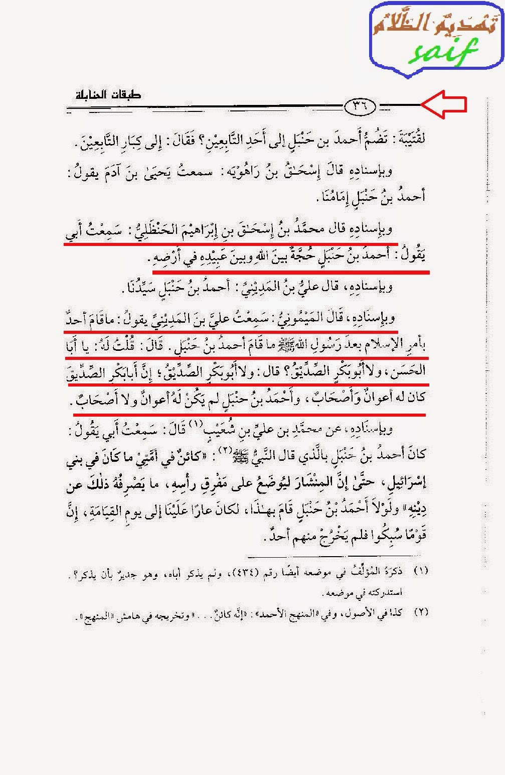 احمد بن حنبل حجة الله على عباده وانه افضل من ابو بكر وجميع الصحابة